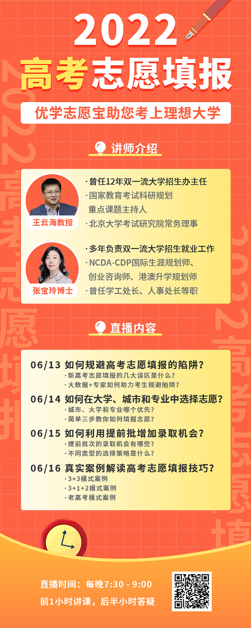 您当前位置:首页>新闻资讯>每周直播:专家讲师在线指导,教你如何填志愿!