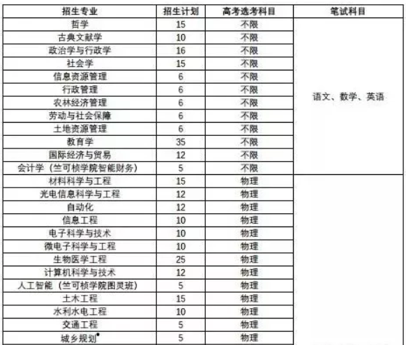 我校2019年浙江省“三位一体”综合评价招生总计划800名。按专业招生,各专业招生计划、高考选考科目要求及笔试科目详见下表。