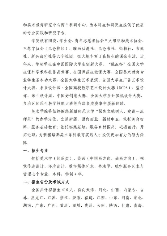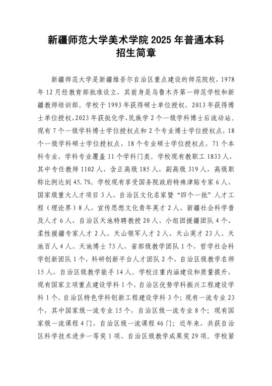 新疆师范大学美术学院2025年普通本科招生简章