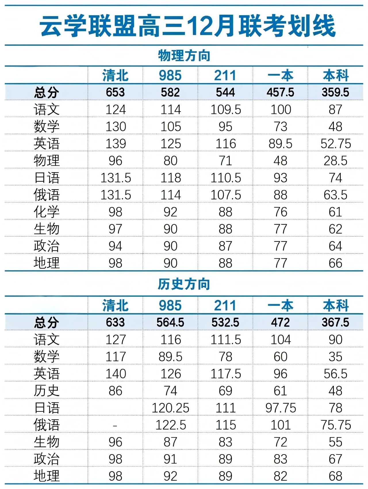 历史方向:清北线:633、985线:564.5、211线:532.5、一本线:472、本科线:367.5。