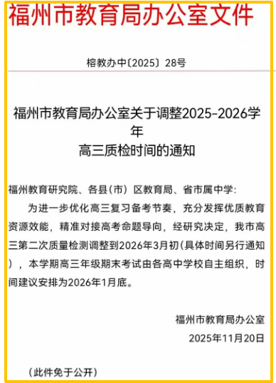 福州2026届高三市质检时间