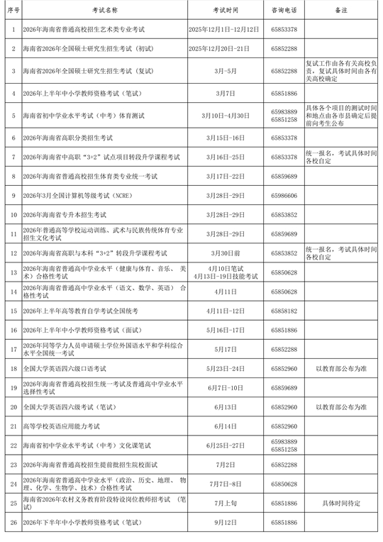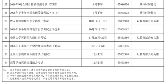 考试局2026年考试日历