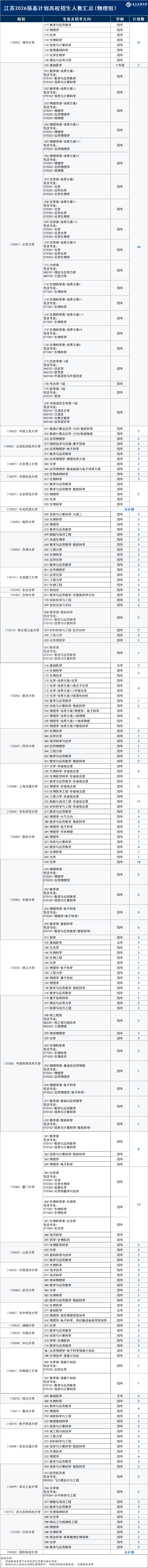 江苏省2026年强基计划招生计划数汇总(物理组)