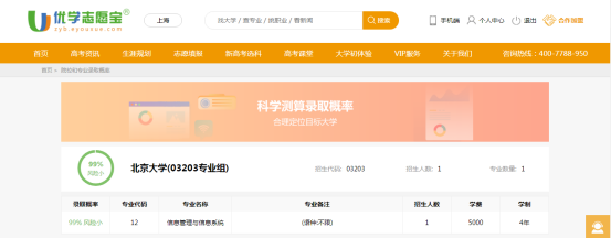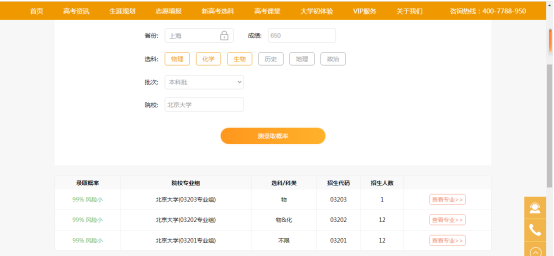 测录取概率,可以帮助我们在志愿填报快速了解到报考指定院校的风险概率,帮助我们更好的进行志愿填报,赶紧来体验一下吧!
