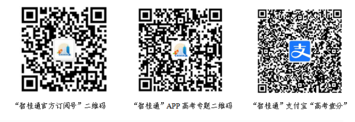 考生关注微信公众号'智桂通官方订阅号',点击底部菜单栏,或在'智桂通'App、'智桂通'支付宝小程序搜索'高考专题',在'高考专题页—成绩查询'中,即可查询本人高考成绩信息。