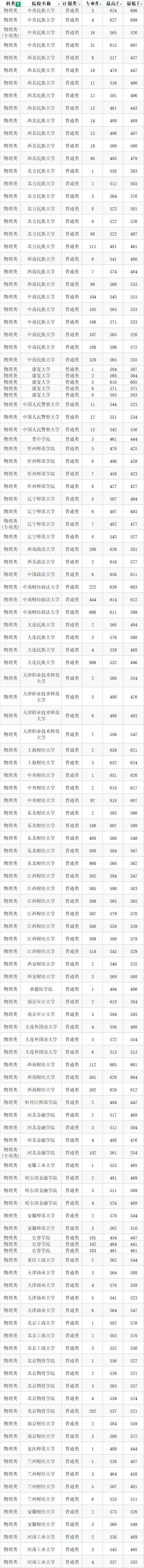 2025年普通高考本科批第一次投档最高分最低分(物理类)