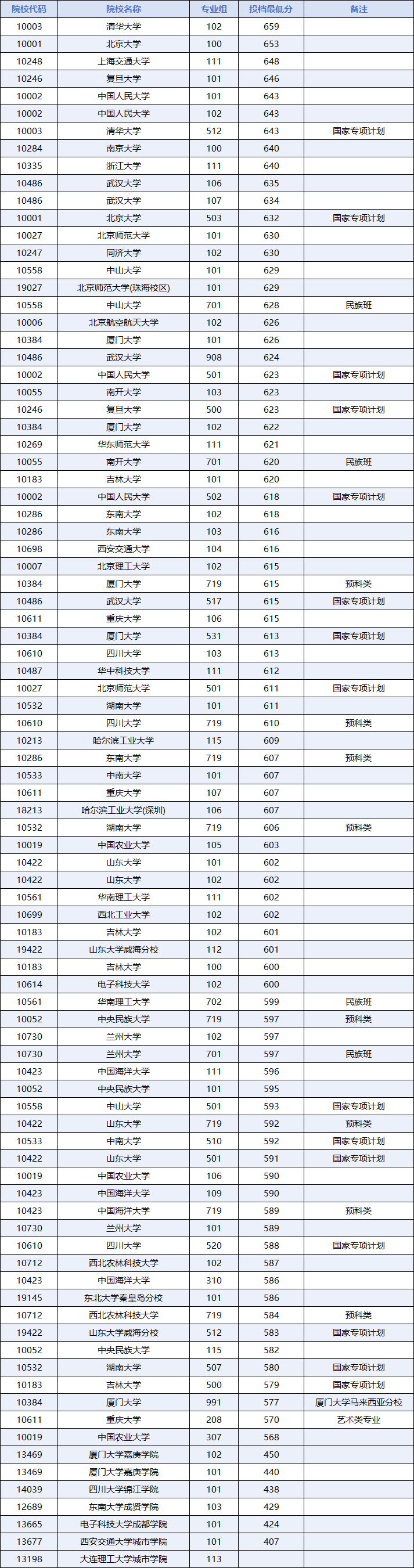 广西2025年高考39所985高校各专业投档分数线(历史类)