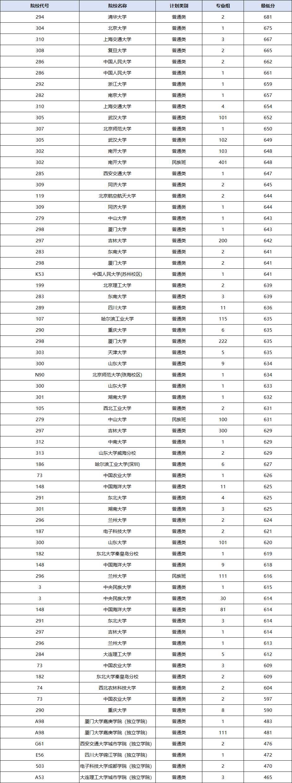 内蒙古2025年高考39所985高校各专业投档分数线(历史类)