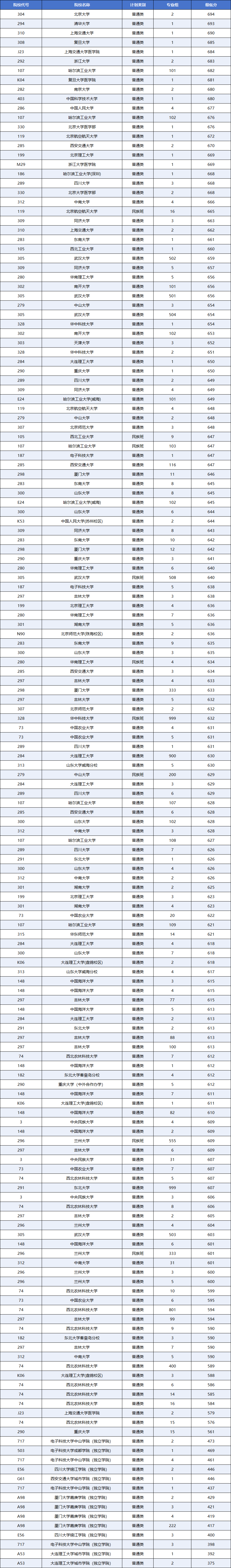 内蒙古2025年高考39所985高校各专业投档分数线(物理类)