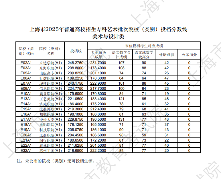 专科艺术批次院校(类别)投档分数线(美术与设计类)