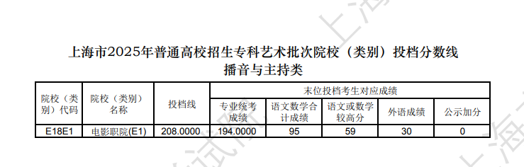 专科艺术批次院校(类别)投档分数线(播音与主持类)