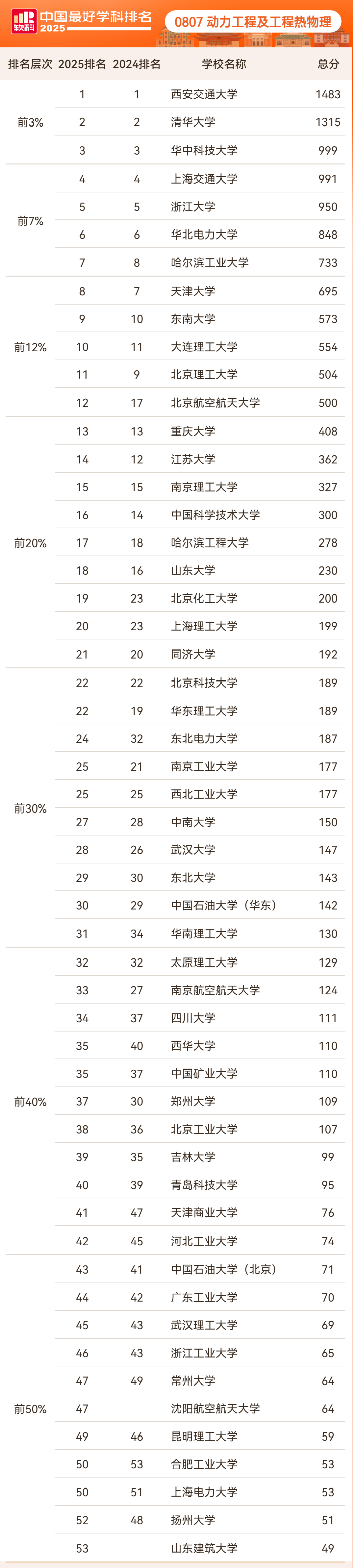 2025年软科中国最好学科排名——动力工程及工程热物理