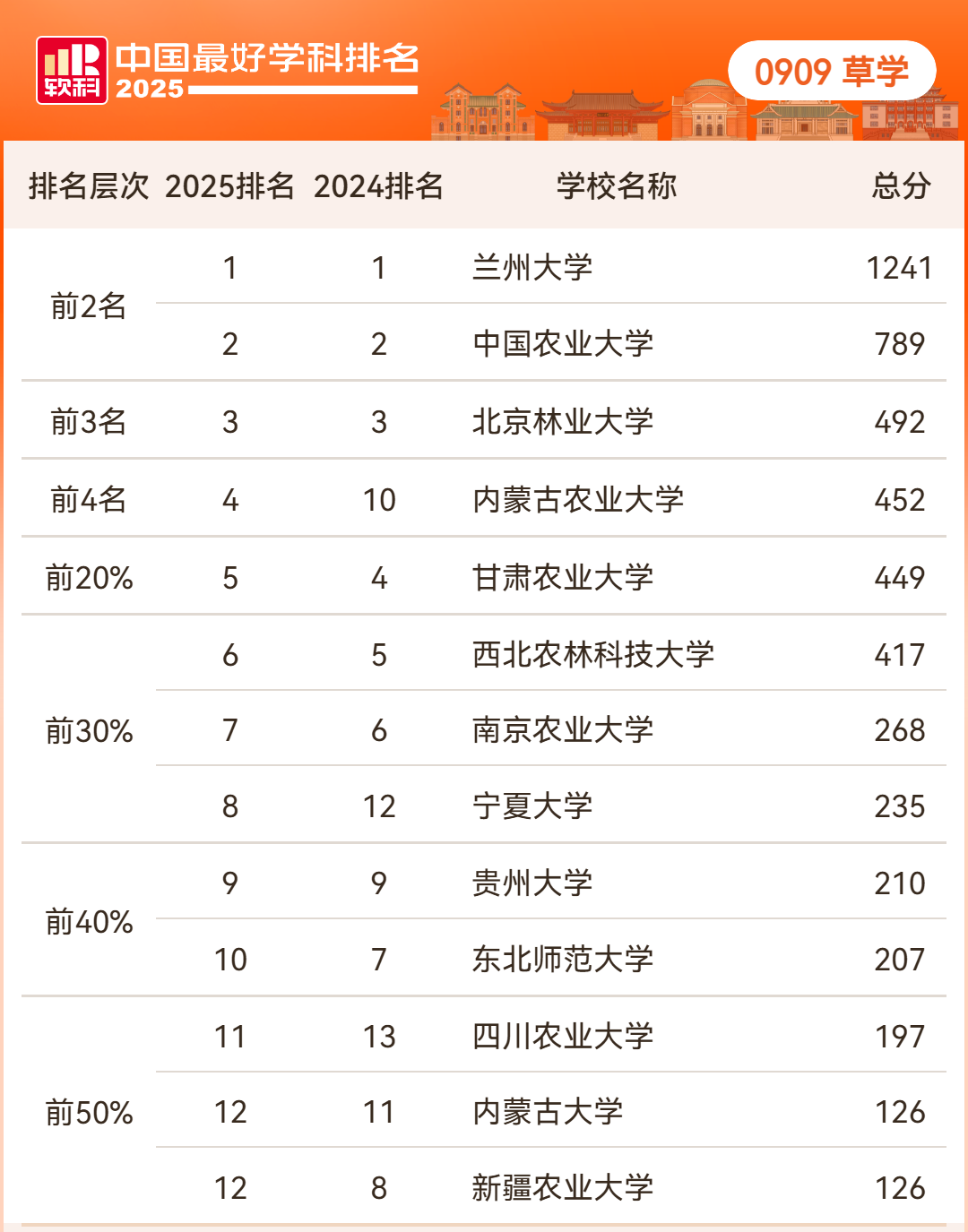 2025年软科中国最好学科排名——草学
