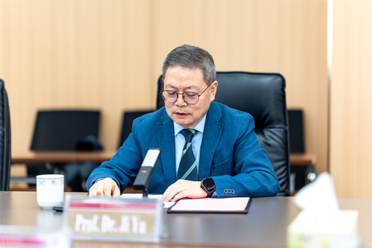 姬宇校长介绍了学校的办学定位、育人特色与国际化发展成果。他表示,学校以'完整的人'为培养目标,创新推行'四位一体双院制'育人模式,多个专业通过德国ASIIN、ZEvA权威国际认证,国际化办学水平稳步提升。他强调,bbw应用技术大学是学校重要的国际战略合作伙伴,希望两校持续深化务实合作,积极推进师生互访、文化交流与教学资源共享,不断提升人才培养的国际化水平。