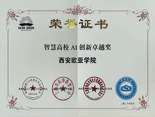 4月10日,第十一届智慧高校CIO上海论坛隆重举行,本次会议主题为'AI引领,智启高等教育新征程'。西安欧亚学院数字化研究院院长、图文信息中心主任罗征受邀参会并作专题报告。凭借在智慧校园及AI教育创新领域的突出成果,西安欧亚学院荣获'智慧高校AI创新卓越奖',罗征获评'智慧高校数字化转型先锋人物'。两项荣誉充分体现了业界对学校数字化建设的高度认可。